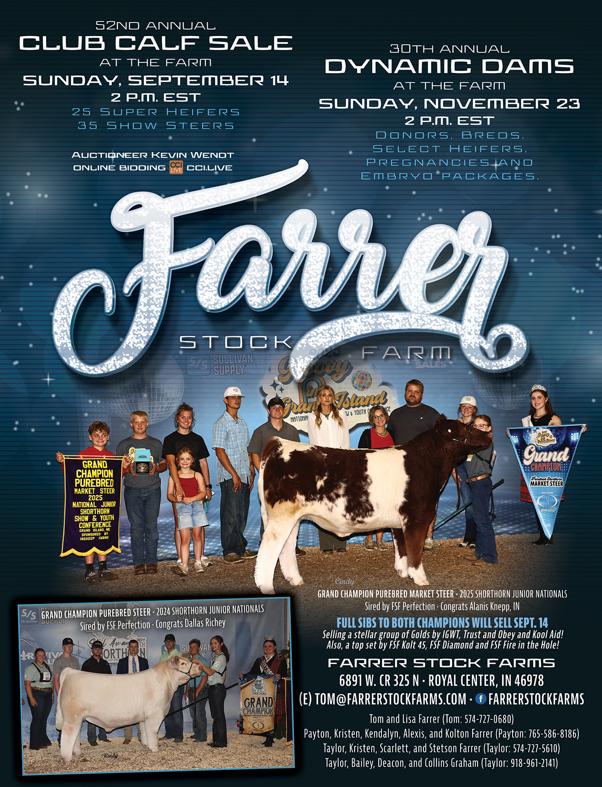 Show Steers -- Show Heifers -- Bred Cows -- Bred Heifers -- Semen -- Embryos-- Pregnancies