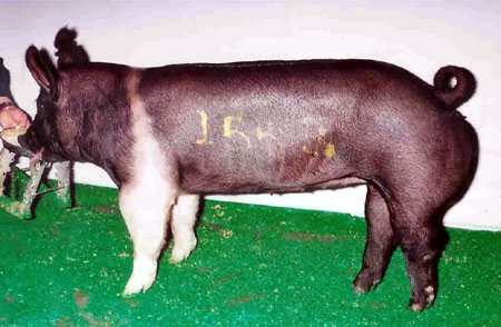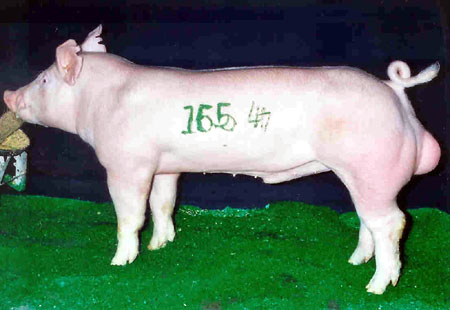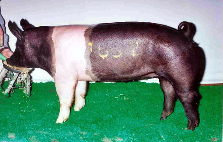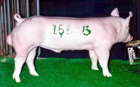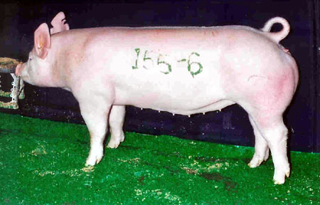 ![]() Great Ambition Reserve Grand Champion Boar Shown by Hirschfeld & Sons Sold to Lean Value Sires & Tony Holcomb for $7,500 GreatXpectation x Enforcer - Dam was the record-selling $17,000 sow. |